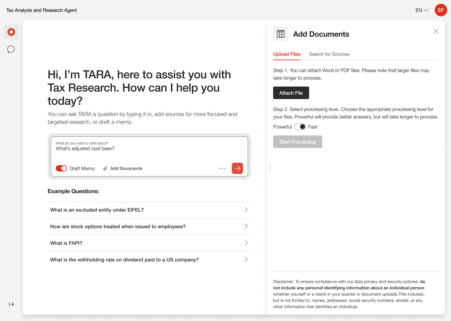 An internal GenAI tool designed for Tax employees to simplify research, reduce costs, and increase efficiency and accuracy over traditional processes.