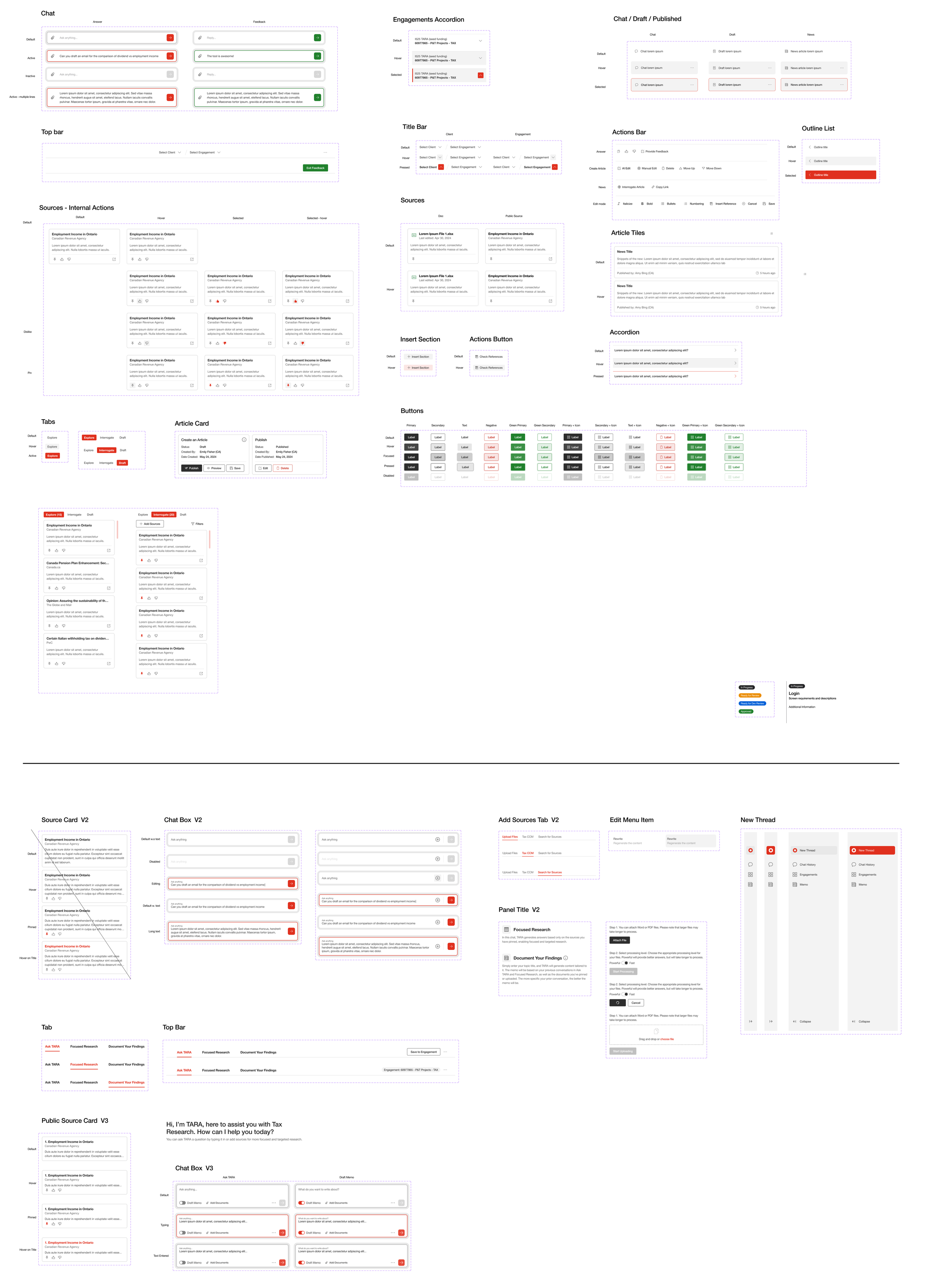 I conducted discovery sessions with tax SMEs to identify pain points and designed user flows and prototypes, iterating based on feedback. Following that, a detailed design system was created for common components for the tool